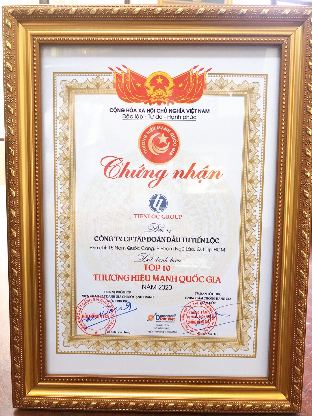 Tập đoàn Đầu tư Tiến Lộc đạt danh hiệu Doanh nghiệp - Doanh nhân tiêu biểu 2020